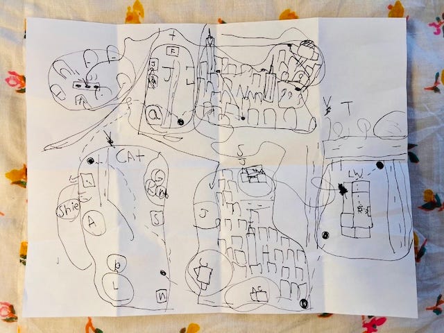 This morning, my kids woke up at the crack of dawn to see what the Easter Bunny brought them. West and Lou are ten, I don’t know if I should be worried that they still believe in the Easter Bunny, but I’m touched that they’re holding on. “I love when the magical beings come,” West said, dreamily, as the pink sun slowly flooded our home. The boys spent the rest of the morning eating their candy, and drawing maps, trying to figure out how the Easter Bunny gets from his land to ours…